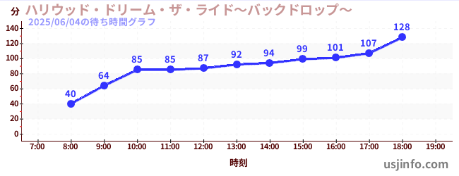 • ハリウッド・ドリーム・ザ・ライド〜バックドロップ〜$B$N(B2025年06月04日の待ち時間