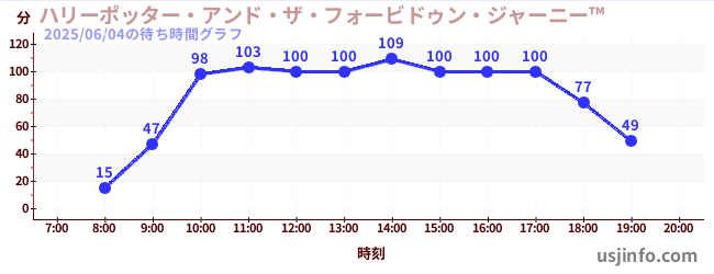 • ハリーポッター・アンド・ザ・フォービドゥン・ジャーニー™$B$N(B2025年06月04日の待ち時間