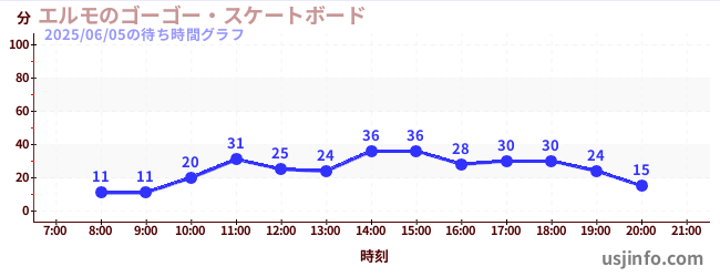 • エルモのゴーゴー・スケートボード$B$N(B2025年06月05日の待ち時間