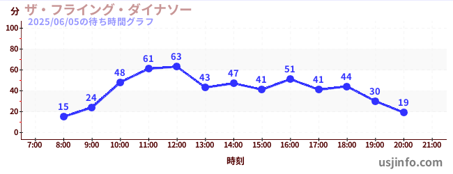• ザ・フライング・ダイナソー$B$N(B2025年06月05日の待ち時間