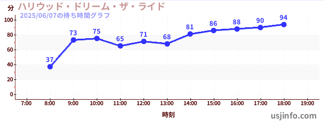 • ハリウッド・ドリーム・ザ・ライド$B$N(B2025年06月07日の待ち時間
