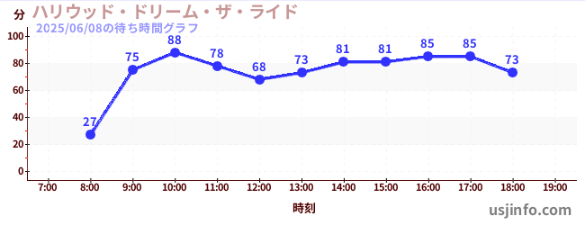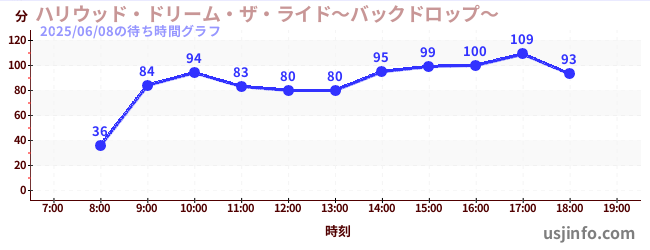 • ハリウッド・ドリーム・ザ・ライド$B$N(B2025年06月08日の待ち時間