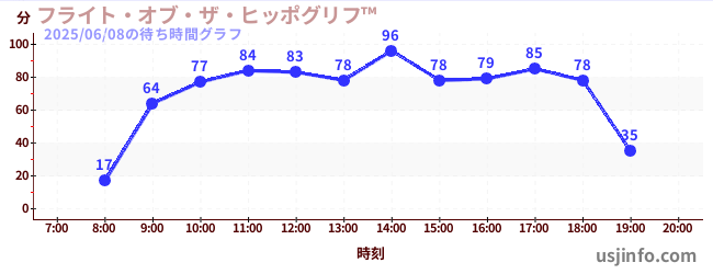 • フライト・オブ・ザ・ヒッポグリフ™$B$N(B2025年06月08日の待ち時間