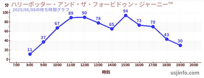 • ハリーポッター・アンド・ザ・フォービドゥン・ジャーニー™$B$N(B2025年06月08日の待ち時間