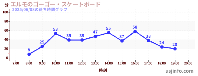• エルモのゴーゴー・スケートボード$B$N(B2025年06月08日の待ち時間