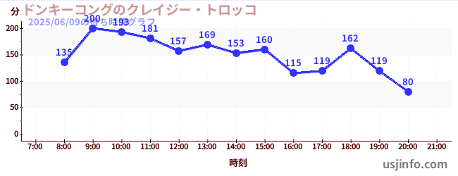 • ドンキーコングのクレイジー・トロッコ$B$N(B2025年06月09日の待ち時間