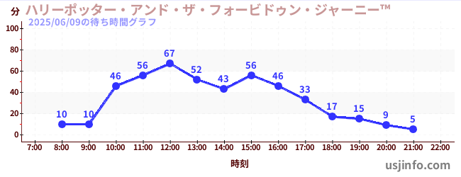 • ハリーポッター・アンド・ザ・フォービドゥン・ジャーニー™$B$N(B2025年06月09日の待ち時間