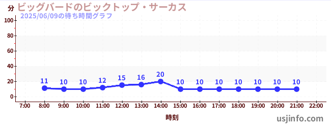 • ビッグバードのビックトップ・サーカス$B$N(B2025年06月09日の待ち時間
