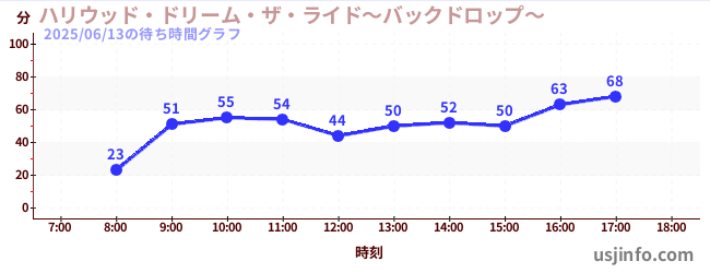 • ハリウッド・ドリーム・ザ・ライド〜バックドロップ〜$B$N(B2025年06月13日の待ち時間