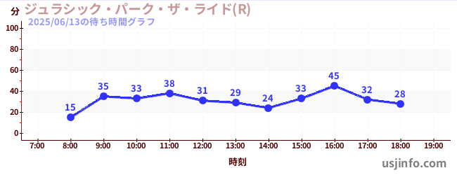 • ジュラシック・パーク・ザ・ライド(R)$B$N(B2025年06月13日の待ち時間