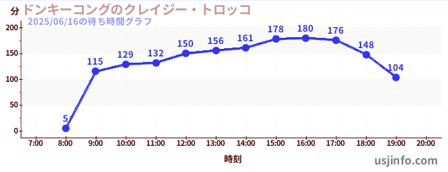 • ドンキーコングのクレイジー・トロッコ$B$N(B2025年06月16日の待ち時間