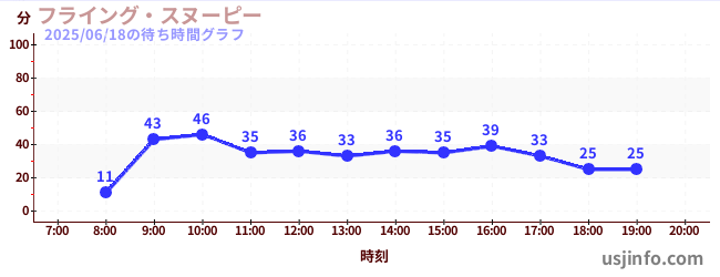 • フライング・スヌーピー$B$N(B2025年06月18日の待ち時間