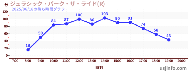 • ジュラシック・パーク・ザ・ライド(R)$B$N(B2025年06月18日の待ち時間