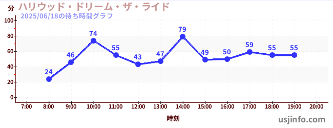 • ハリウッド・ドリーム・ザ・ライド$B$N(B2025年06月18日の待ち時間