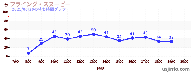 • フライング・スヌーピー$B$N(B2025年06月20日の待ち時間