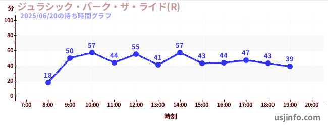 • ジュラシック・パーク・ザ・ライド(R)$B$N(B2025年06月20日の待ち時間