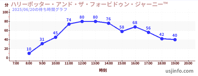 • ハリーポッター・アンド・ザ・フォービドゥン・ジャーニー™$B$N(B2025年06月20日の待ち時間