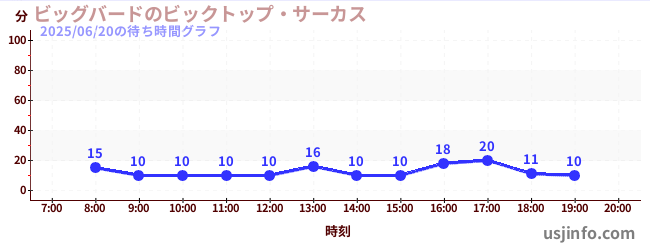 • ビッグバードのビックトップ・サーカス$B$N(B2025年06月20日の待ち時間