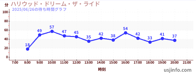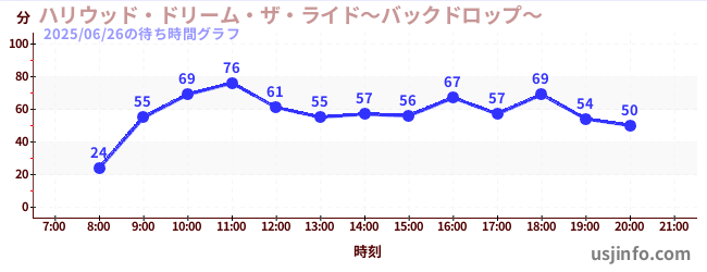 • ハリウッド・ドリーム・ザ・ライド〜バックドロップ〜$B$N(B2025年06月26日の待ち時間