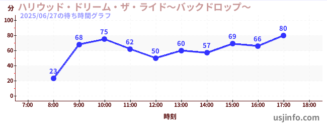 • ハリウッド・ドリーム・ザ・ライド〜バックドロップ〜$B$N(B2025年06月27日の待ち時間