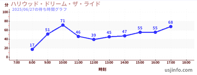 • ハリウッド・ドリーム・ザ・ライド$B$N(B2025年06月27日の待ち時間