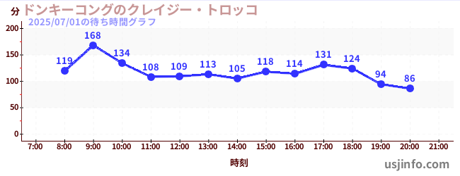 • ドンキーコングのクレイジー・トロッコ$B$N(B2025年07月01日の待ち時間