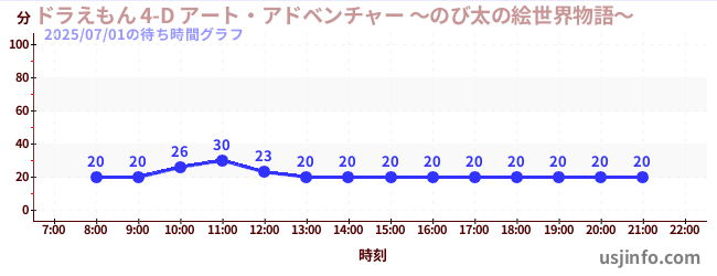• ドラえもん 4-D アート・アドベンチャー ~のび太の絵世界物語~$B$N(B2025年07月01日の待ち時間