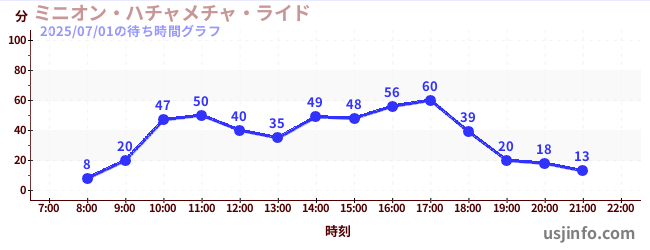 • ミニオン・ハチャメチャ・ライド$B$N(B2025年07月01日の待ち時間