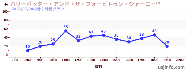 • ハリーポッター・アンド・ザ・フォービドゥン・ジャーニー™$B$N(B2025年07月04日の待ち時間