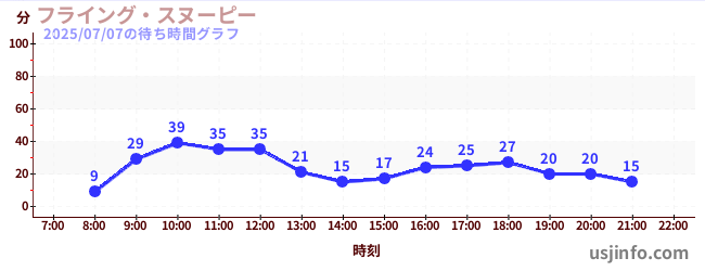 • フライング・スヌーピー$B$N(B2025年07月07日の待ち時間