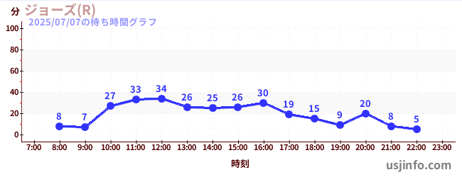 • ジョーズ(R)$B$N(B2025年07月07日の待ち時間