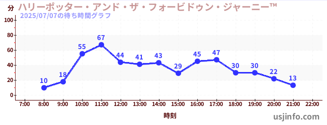 • ハリーポッター・アンド・ザ・フォービドゥン・ジャーニー™$B$N(B2025年07月07日の待ち時間