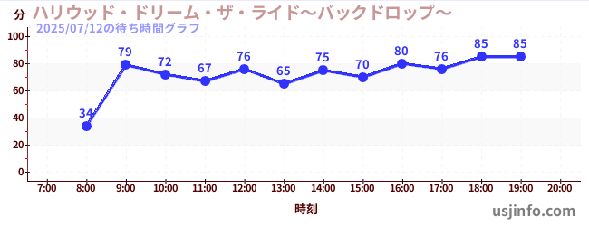 • ハリウッド・ドリーム・ザ・ライド〜バックドロップ〜$B$N(B2025年07月12日の待ち時間