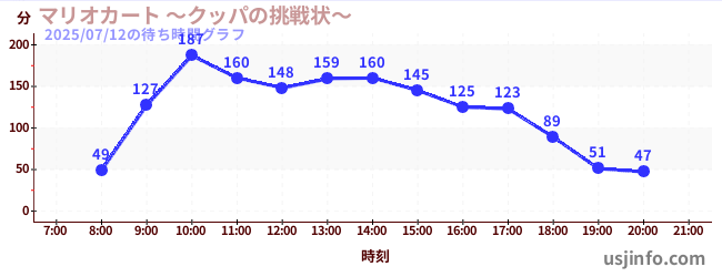 • マリオカート ~クッパの挑戦状~$B$N(B2025年07月12日の待ち時間