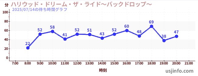 • ハリウッド・ドリーム・ザ・ライド〜バックドロップ〜$B$N(B2025年07月14日の待ち時間