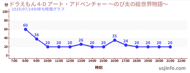 • ドラえもん 4-D アート・アドベンチャー ~のび太の絵世界物語~$B$N(B2025年07月14日の待ち時間