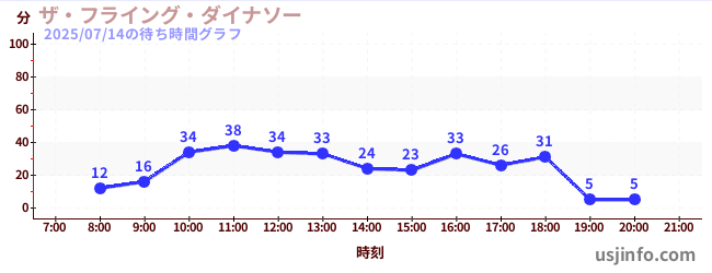 • ザ・フライング・ダイナソー$B$N(B2025年07月14日の待ち時間