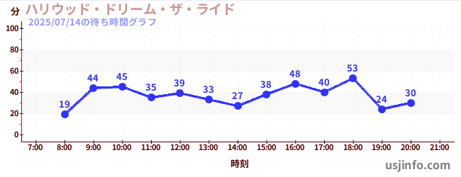 • ハリウッド・ドリーム・ザ・ライド$B$N(B2025年07月14日の待ち時間