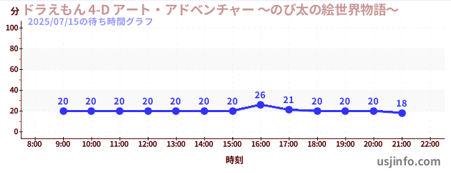 • ドラえもん 4-D アート・アドベンチャー ~のび太の絵世界物語~$B$N(B2025年07月15日の待ち時間