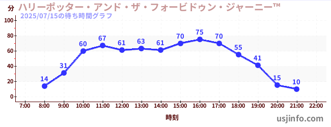 • ハリーポッター・アンド・ザ・フォービドゥン・ジャーニー™$B$N(B2025年07月15日の待ち時間