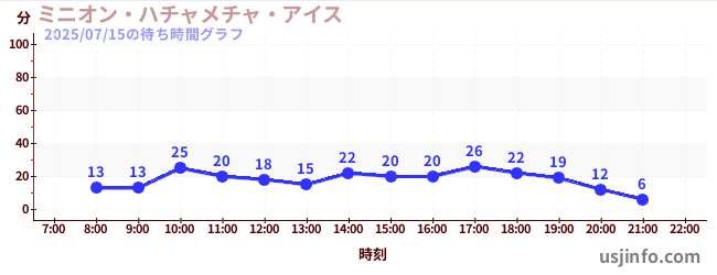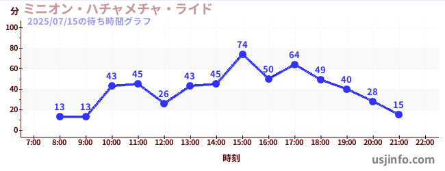 • ミニオン・ハチャメチャ・ライド$B$N(B2025年07月15日の待ち時間