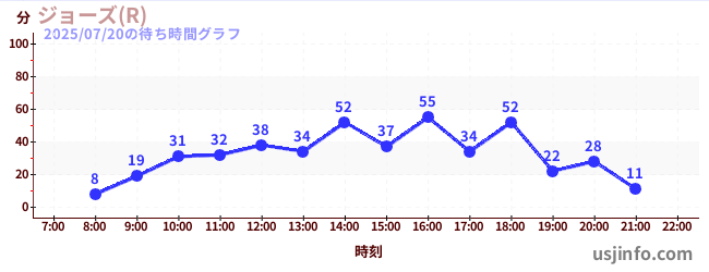 • ジョーズ(R)$B$N(B2025年07月20日の待ち時間