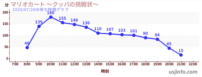 • マリオカート ~クッパの挑戦状~$B$N(B2025年07月20日の待ち時間
