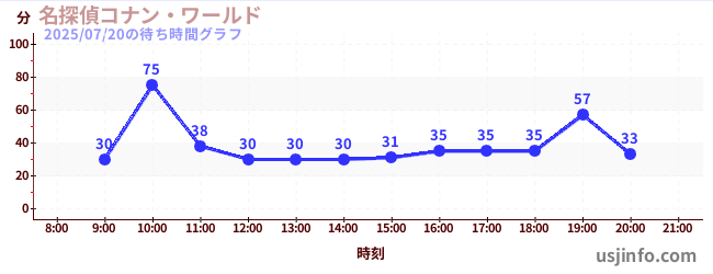 • 名探偵コナン・ワールド$B$N(B2025年07月20日の待ち時間