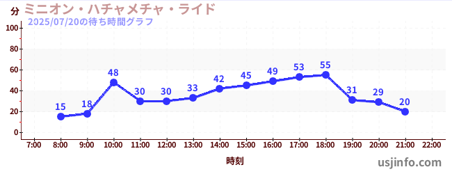 • ミニオン・ハチャメチャ・ライド$B$N(B2025年07月20日の待ち時間