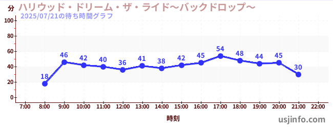 • ハリウッド・ドリーム・ザ・ライド〜バックドロップ〜$B$N(B2025年07月21日の待ち時間