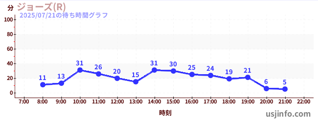 • ジョーズ(R)$B$N(B2025年07月21日の待ち時間