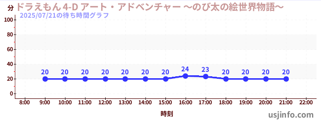 • ドラえもん 4-D アート・アドベンチャー ~のび太の絵世界物語~$B$N(B2025年07月21日の待ち時間