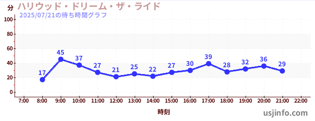 • ハリウッド・ドリーム・ザ・ライド$B$N(B2025年07月21日の待ち時間