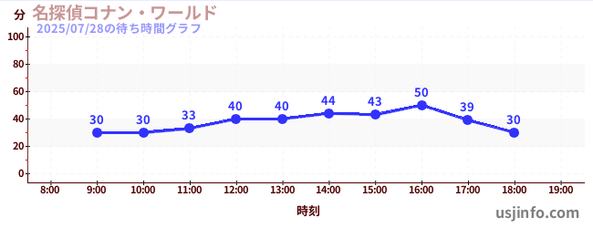 • 名探偵コナン・ワールド$B$N(B2025年07月28日の待ち時間